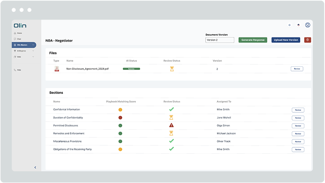 Use Olin.ai to highlight key issues and compare against any previous deal documents or precedents.